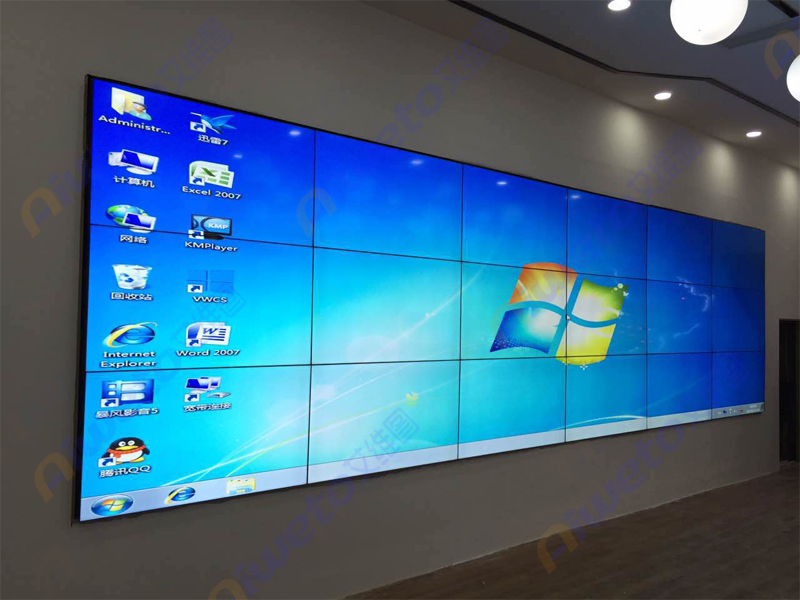 此次18塊55寸拼接屏安裝方式采用落地式安裝就是在墻體上挖出空間,可以跟周圍的環境更好的融合,能夠更加節省空間。對于嵌入式安裝的美化,我們就需要做到整個液晶拼接墻的墻體部分和實體墻面要做到無縫縫合的地步,如果大屏拼接墻體和整個墻面之間還有縫隙就會相對難看了。所以做了包邊或者美縫處理。