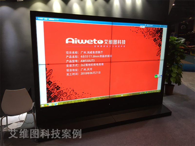 根據廣州鴻威會展集團的客戶需求, 本來按效果來說應該安裝液壓前維護支架式,但是由于需要做觸摸拼接屏,只能定制落地式機柜才能安裝,此套艾維圖科技提供的55寸超窄邊觸摸液晶拼接系統為廣州鴻威會展集團的所有工作人員促進了工作效率,從節能、顯示方式、超高的清晰度等眾多優勢,無一不彰顯出觸摸拼接屏的獨特魅力。