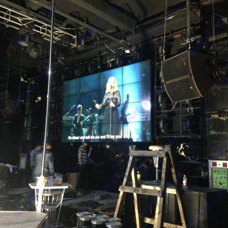 此次項目是為東莞南城Logo酒吧大廳內(nèi)安裝1套高清大屏幕液晶拼接系統(tǒng),為其打造了東莞高端夜店氣氛。