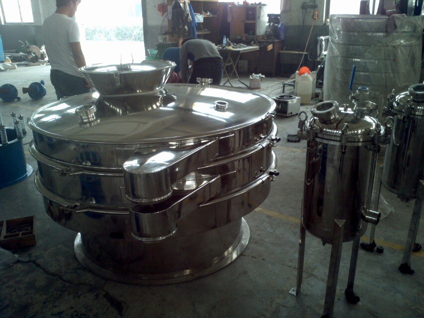 旋振篩是一種高精細粉篩分機械,其具有噪音低、效率高,快速換網需(3-5分鐘)的優點,全封閉結構,適用于粒、粉、粘液等物料的篩分過濾。 在現場使用中,經常能碰到客戶提出一些常見的問題,其實這些問題不是個別現象,為了能方便用戶碰到問題耽誤生產,我將問題歸納總結,方便大家以后借鑒。 一、旋振篩運轉時物料排出困難: (1)旋振篩電機上、下偏心塊夾角大于90°; (2)旋振篩電機上、下偏心塊角度調反。 二、旋振篩運轉時有異常響聲: (1)檢查束環螺絲是否松動,束環和篩框是否嵌合; (2