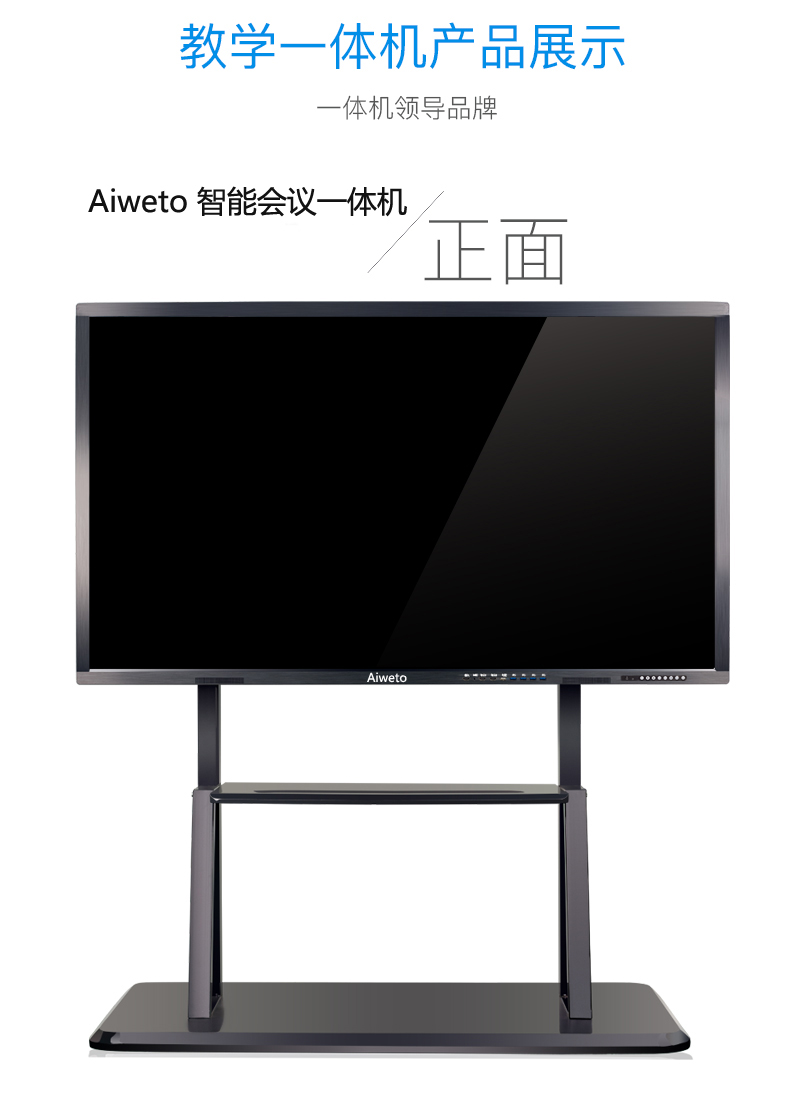 Aiweto(艾維圖)會議多媒體觸摸一體機采用LG商用IPS硬屏,全高(1920*1080)顯示,具有178度視角,高對比度和亮度,3D數字降噪,智能消除殘影、重影等失真現象,使得顯示畫面更清晰,穩定,色彩更鮮艷