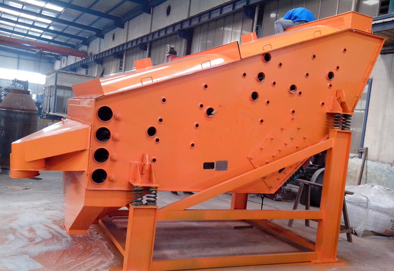 概率篩和普通振動篩基本結構是一樣的,也由篩箱、激振器和支承(吊掛)裝置三部分組成。但結構又具有層數多、傾角大、篩孔大和篩面短四大特點。概率篩的篩箱由篩框和3~5個篩面組成,篩框是用鋼板和型鋼焊接或鉚接的多邊形箱體,篩面裝設在篩框上。每個篩框上可安置數個傾斜篩面,目前,多數概率篩裝有三層或五層篩面。各層篩面的坡度,自上而下遞增。由于考慮到物料在篩面一有較大的運行速度,所以采用大的篩面傾角。上層篩面傾角為15°~35°,并以上層傾角為準,以下各層篩面按4°~6°遞增.的篩孔為大,其它篩孔尺寸自上而下逐層遞減.一般上層篩在販篩孔要比分離粒度大10~15倍;下一層篩面的篩孔至少也應是分離粒度的1.5~2倍;中間各層篩的篩孔,可在上和下兩種篩孔之間酌情選取。因為只有在采取大傾角篩面的條件下,才有可能采用遠大于分離粒度的大篩孔篩面,故篩面傾角和篩孔大小應統一考慮。